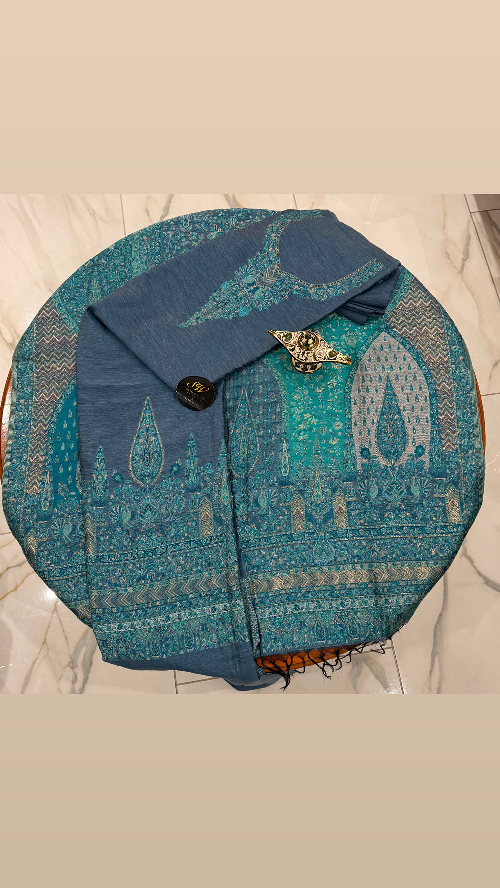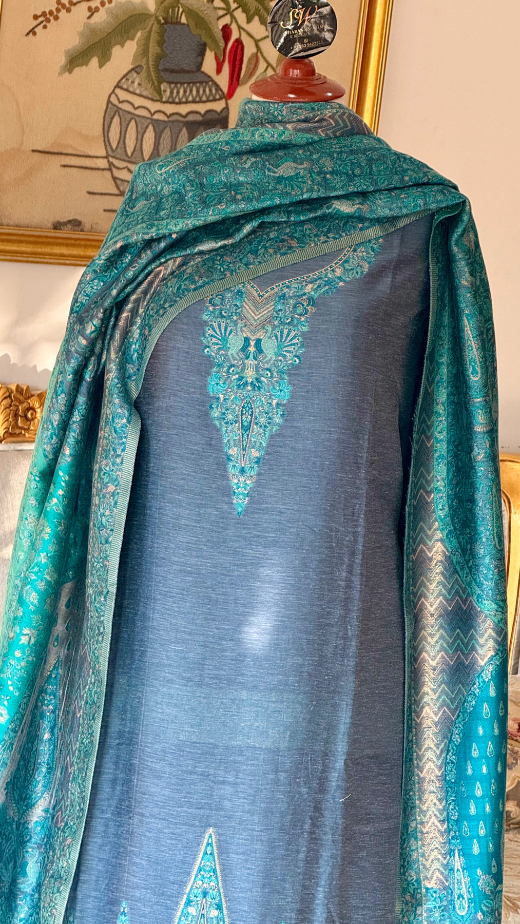 • Shirt: Approx. 3 meters, pure Kani silk with fine handwork on the front & sleeves