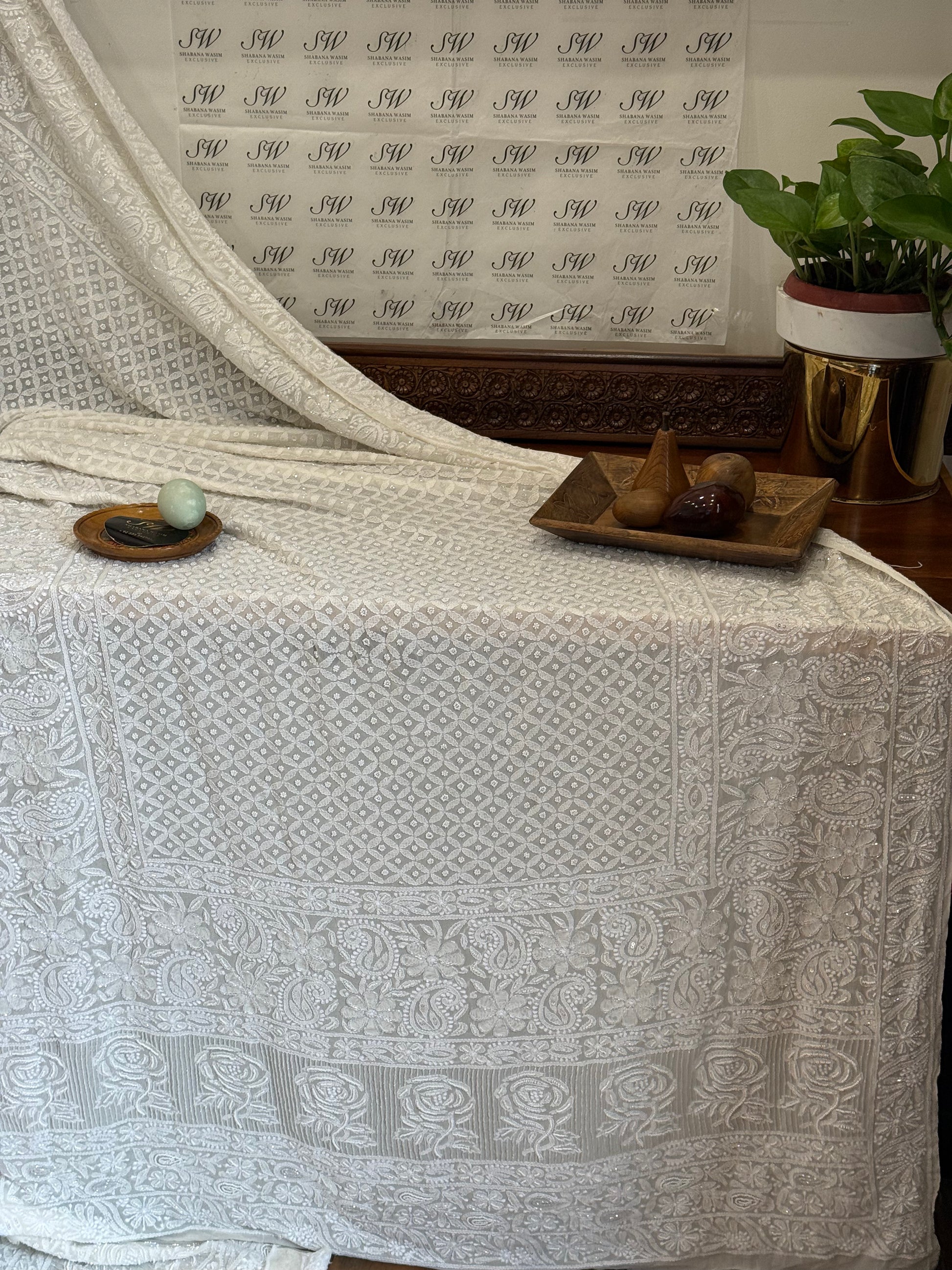 Crafted on pure Georgette for a flowy, luxurious drape
