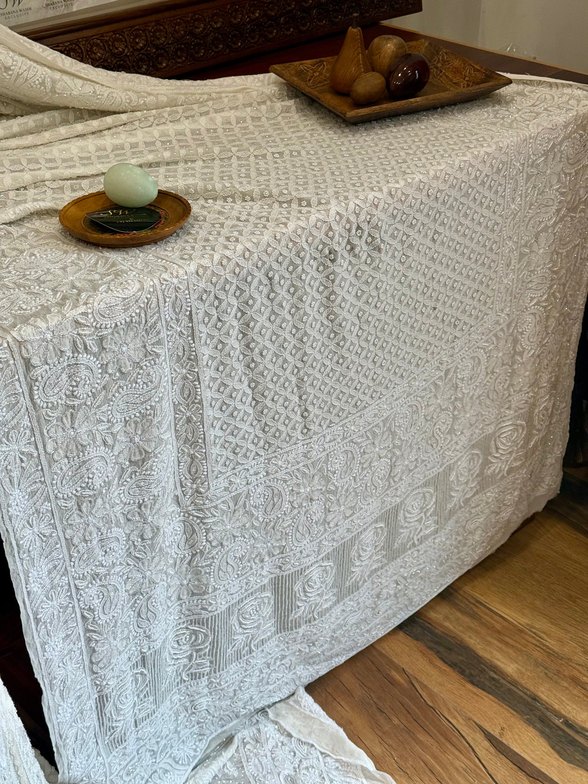 A timeless blend of heritage and elegance, this bridal ensemble is a true celebration of Lucknowi craftsmanship.