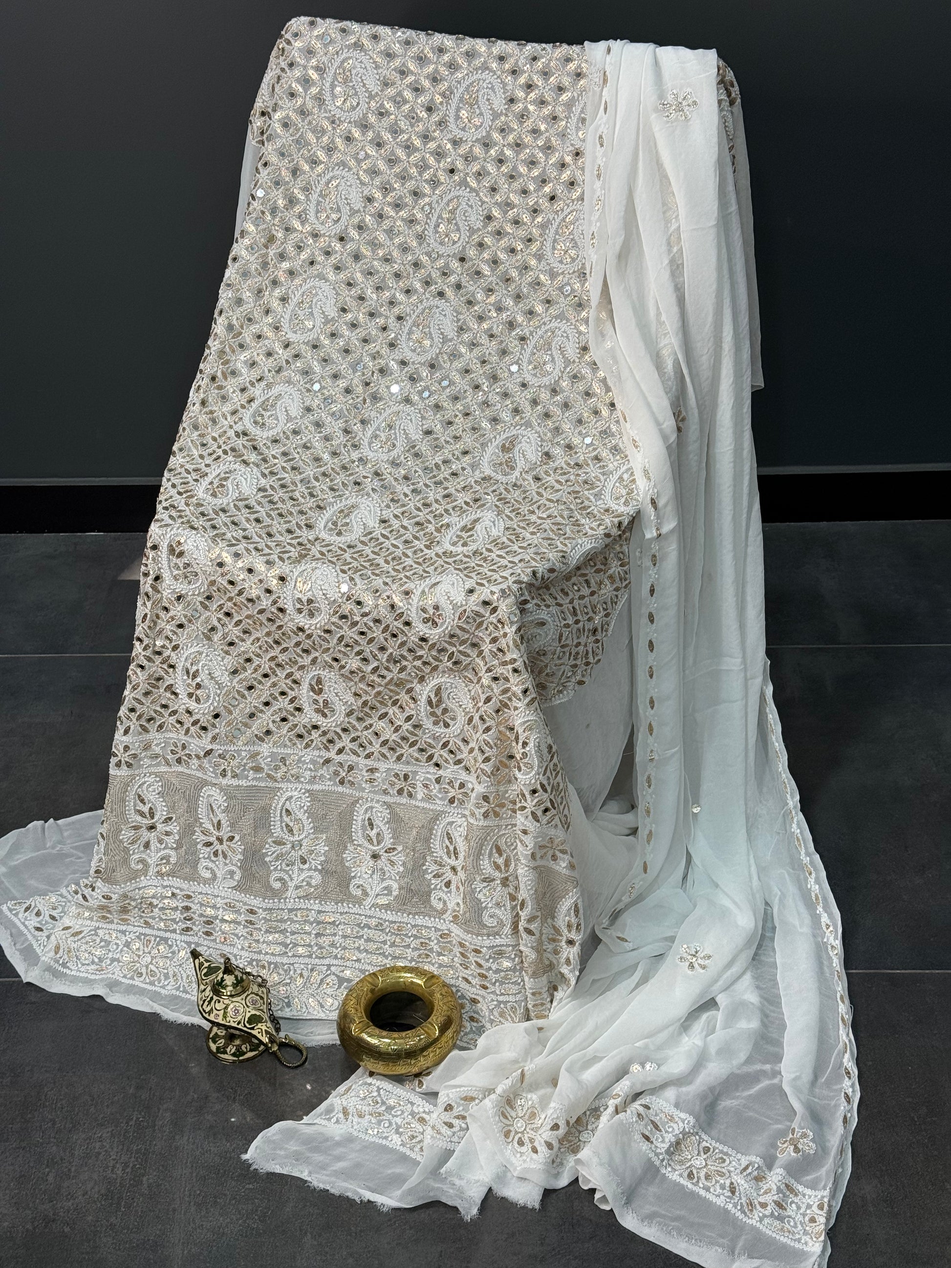 • Fabric: Premium Georgette (Unstitched & Dyeable)