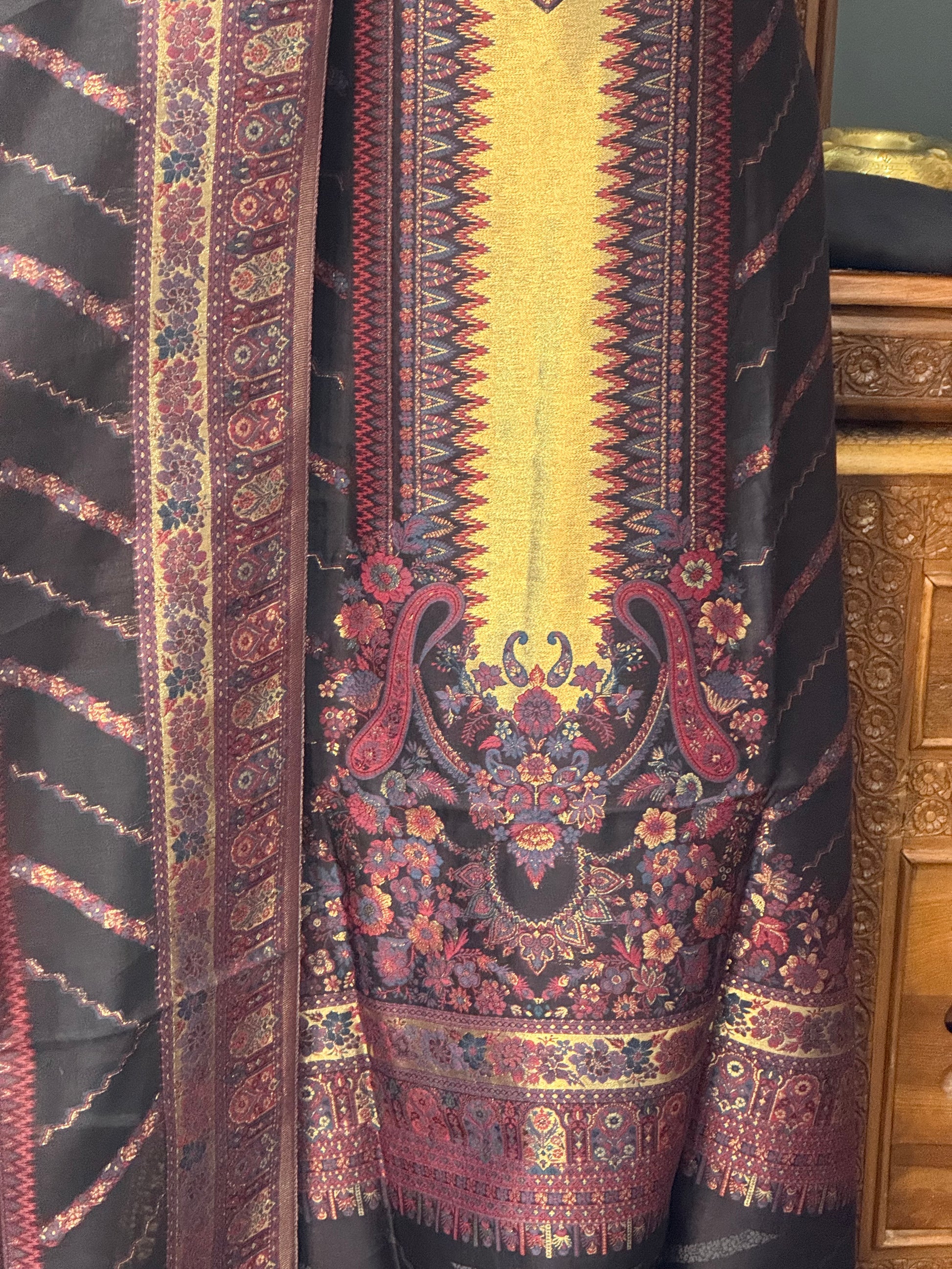 Presenting our latest Kani Silk Dupatta Pair with Pure Silk Karandi Suit — a perfect blend of elegance and luxury for the new season.