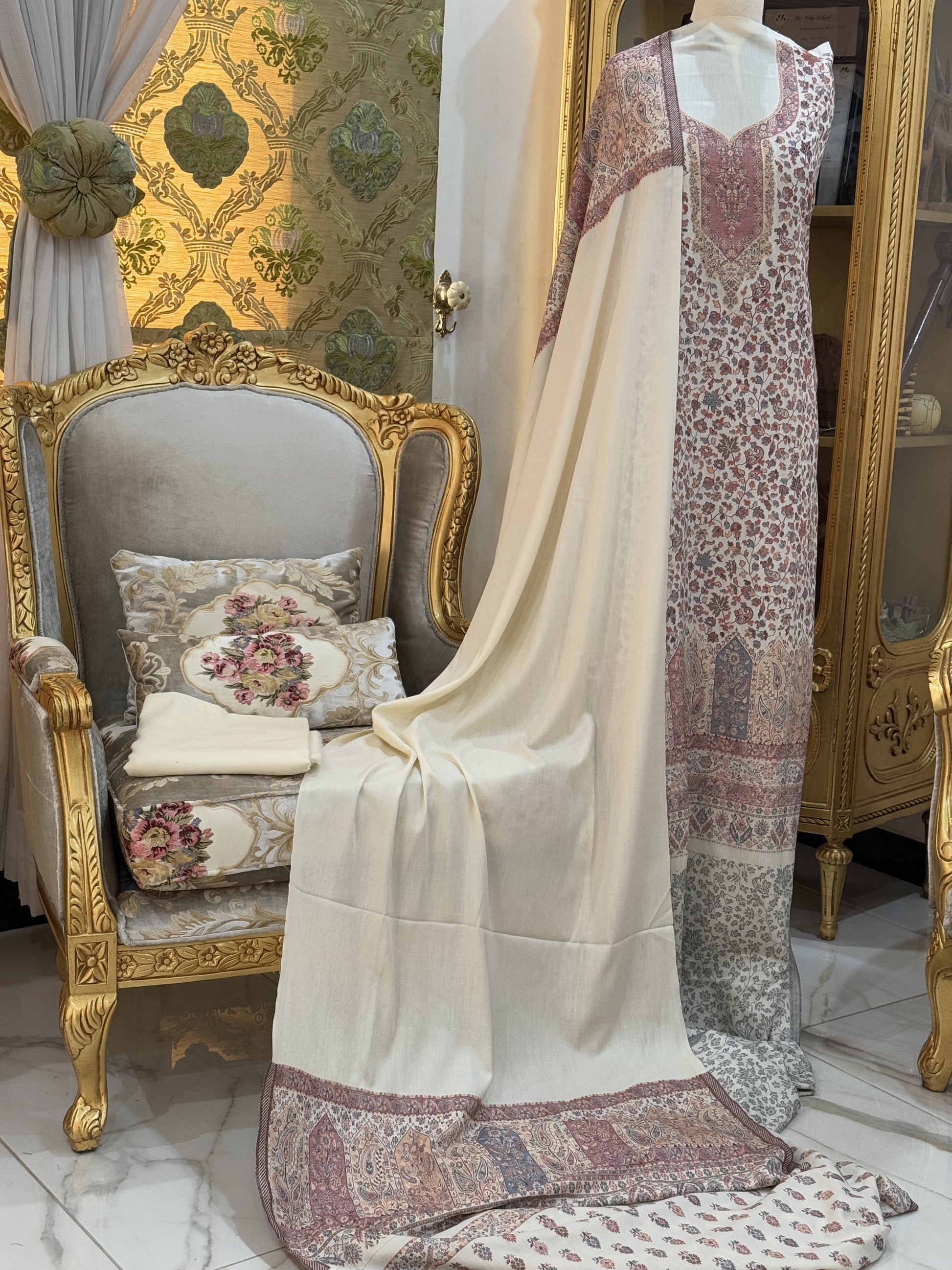 Indulge in timeless Kashmiri elegance with our luxurious Kani wool suit – soft, warm & perfect for winter gatherings or formal wear.