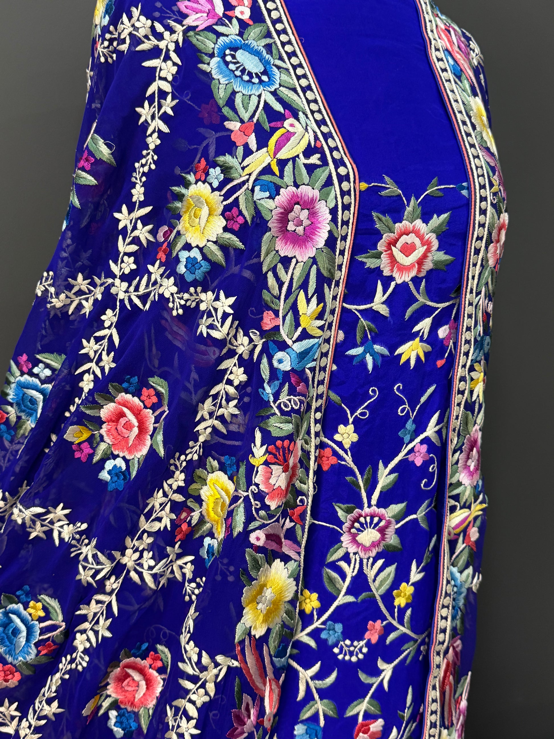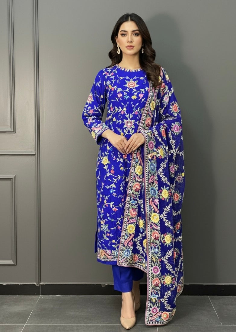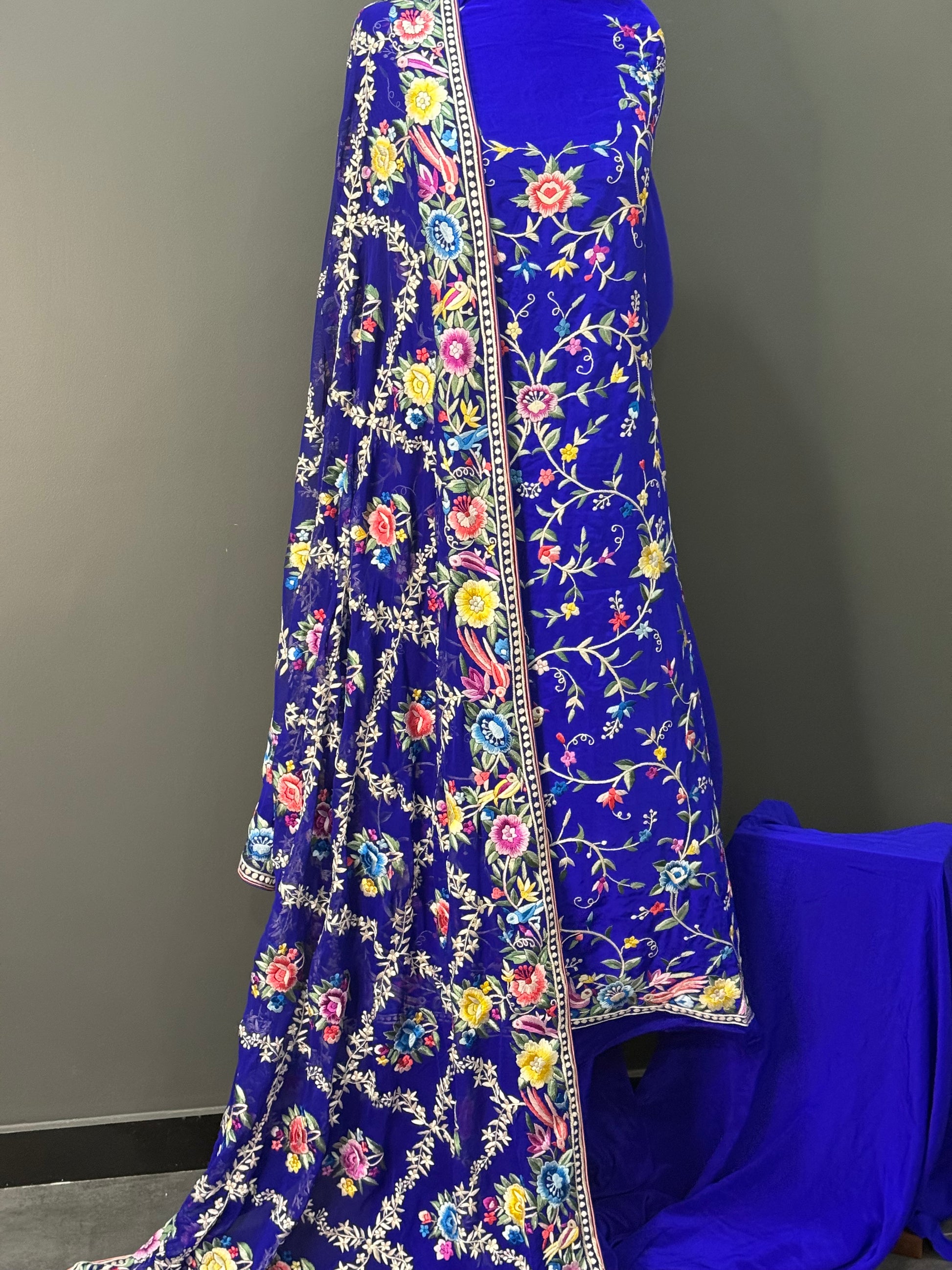 A breathtaking ensemble showcasing the art of intricate Parsi Gara embroidery, crafted with unmatched precision and heritage flair. Perfect for wedding occasions, formal gatherings, or as a luxurious heirloom piece, this suit blends cultural richness with modern grace.