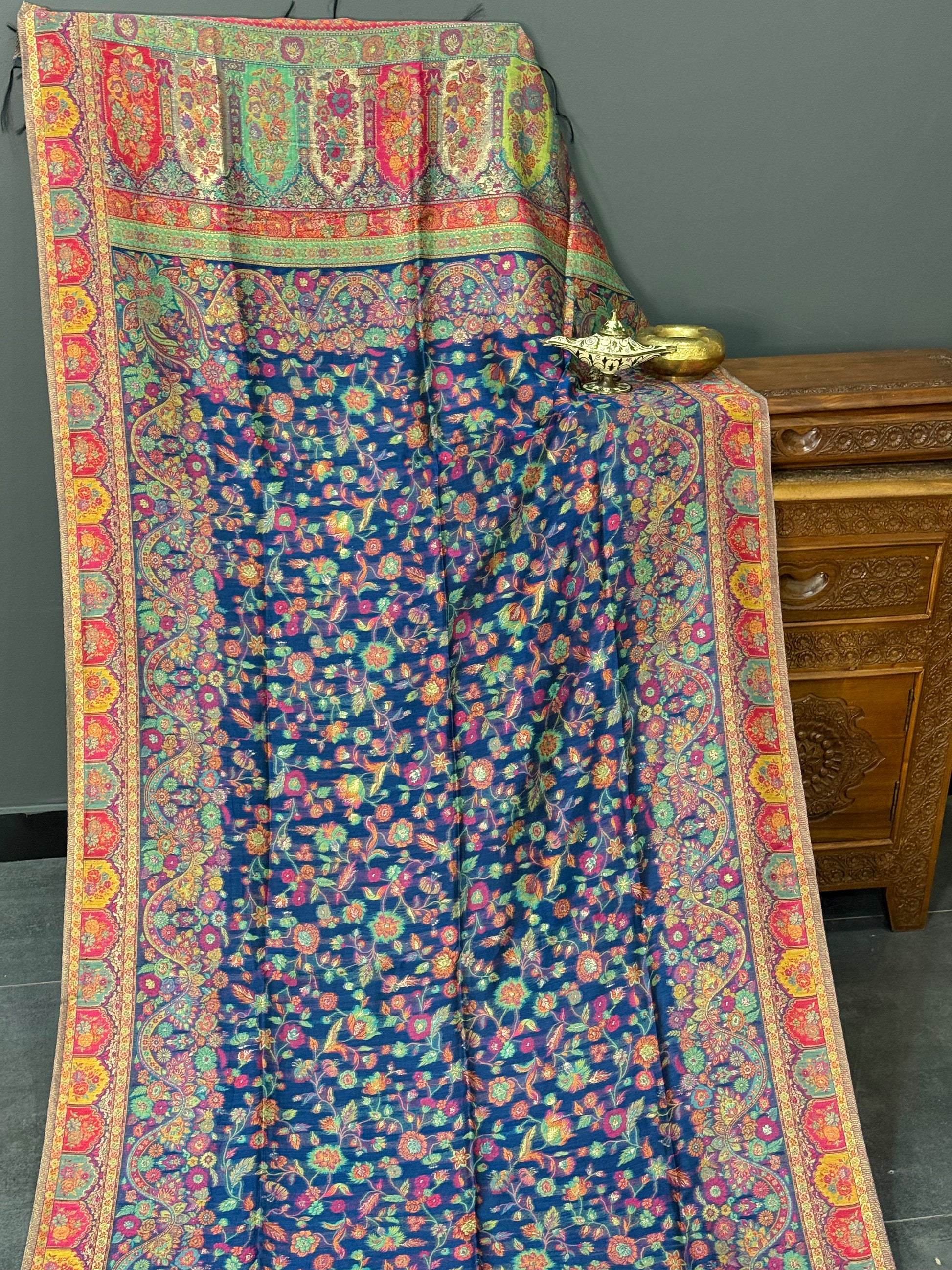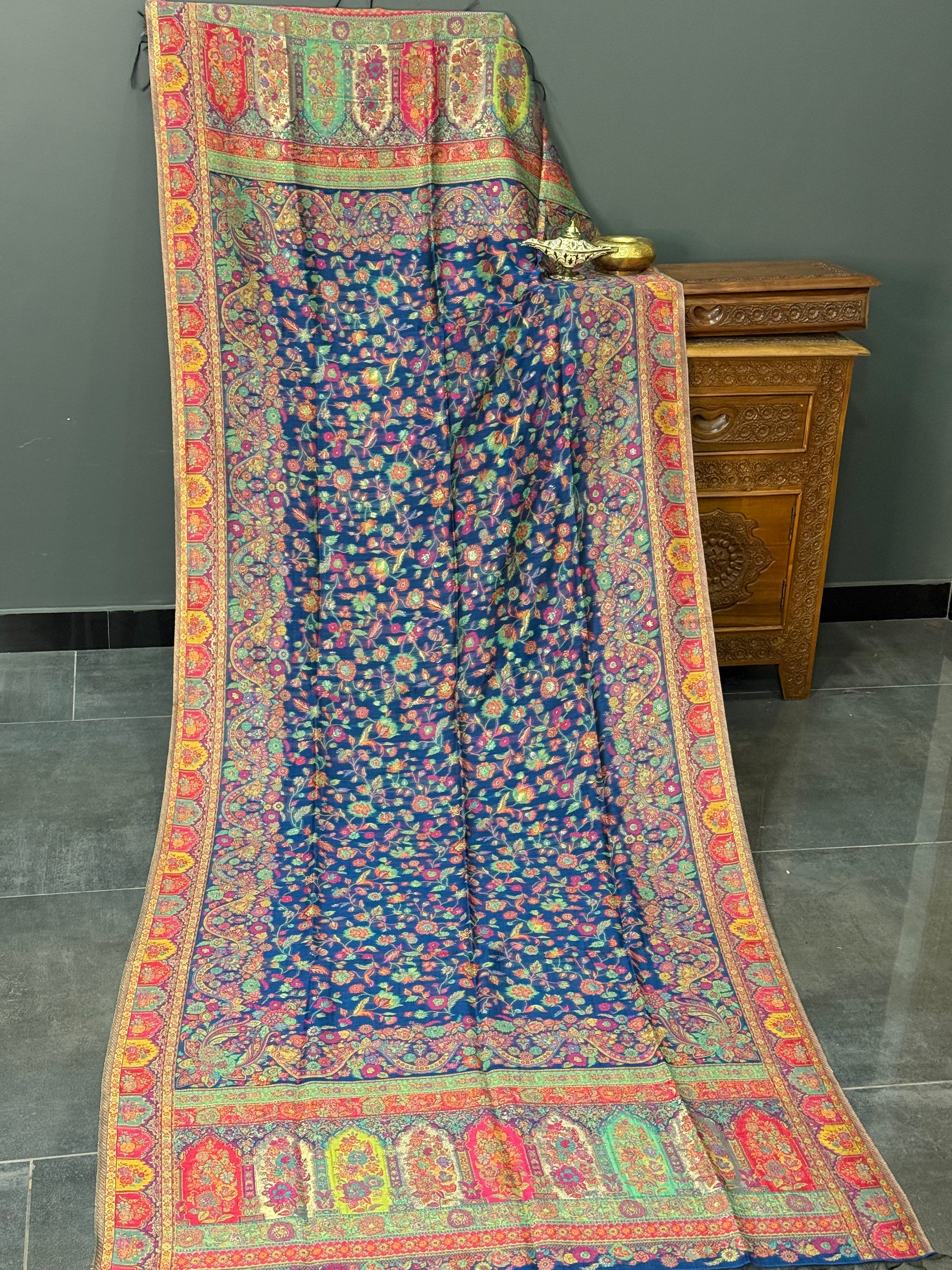 Elevate your ethnic wardrobe with our pure Kani silk dupattas, featuring timeless Kashmiri patterns and intricate woven detailing that reflect heritage craftsmanship at its finest.