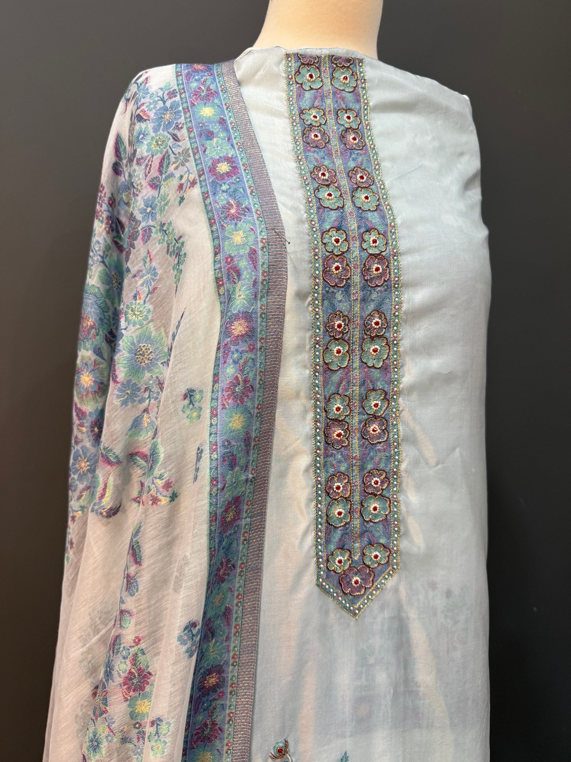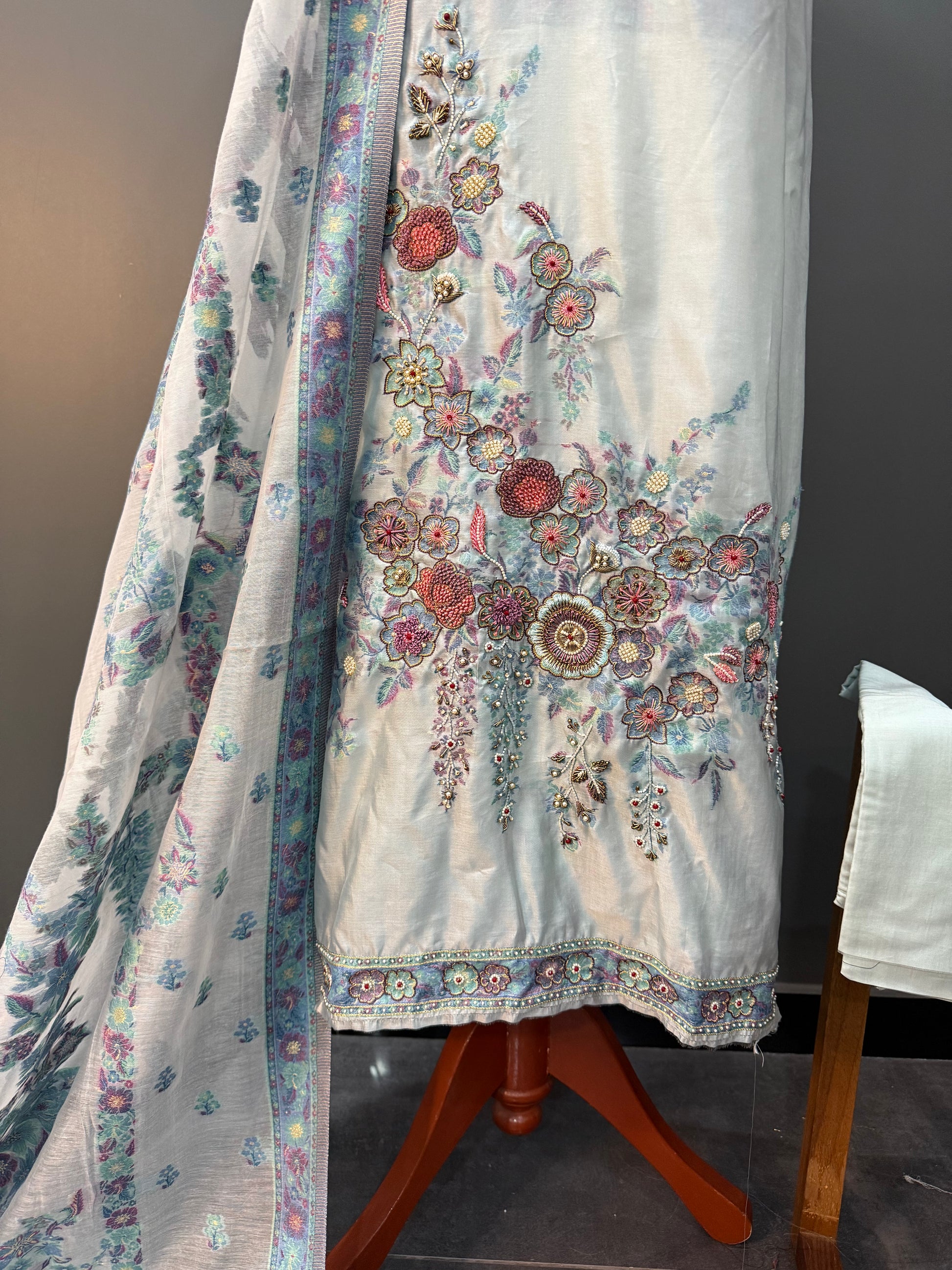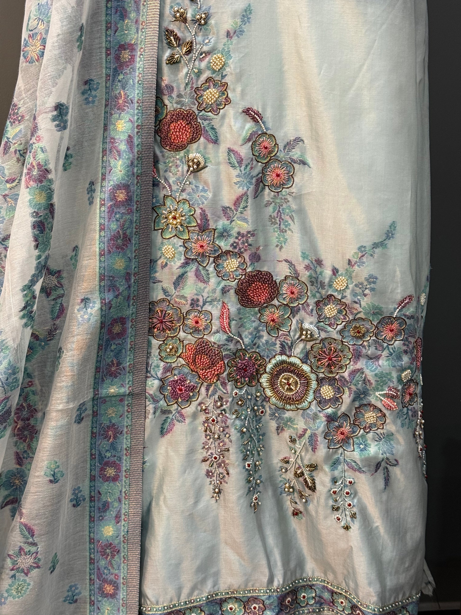 - Shirt: Approx. 3 meters, pure Kani silk with fine handwork on the front & sleeves