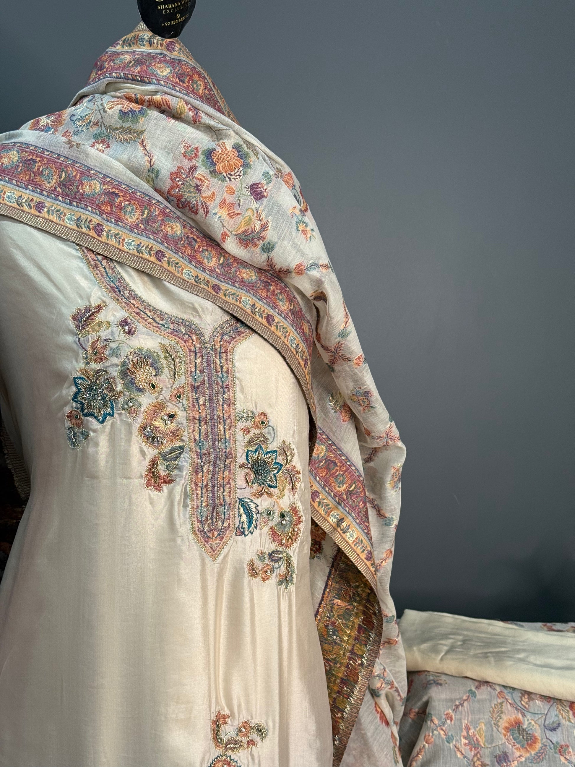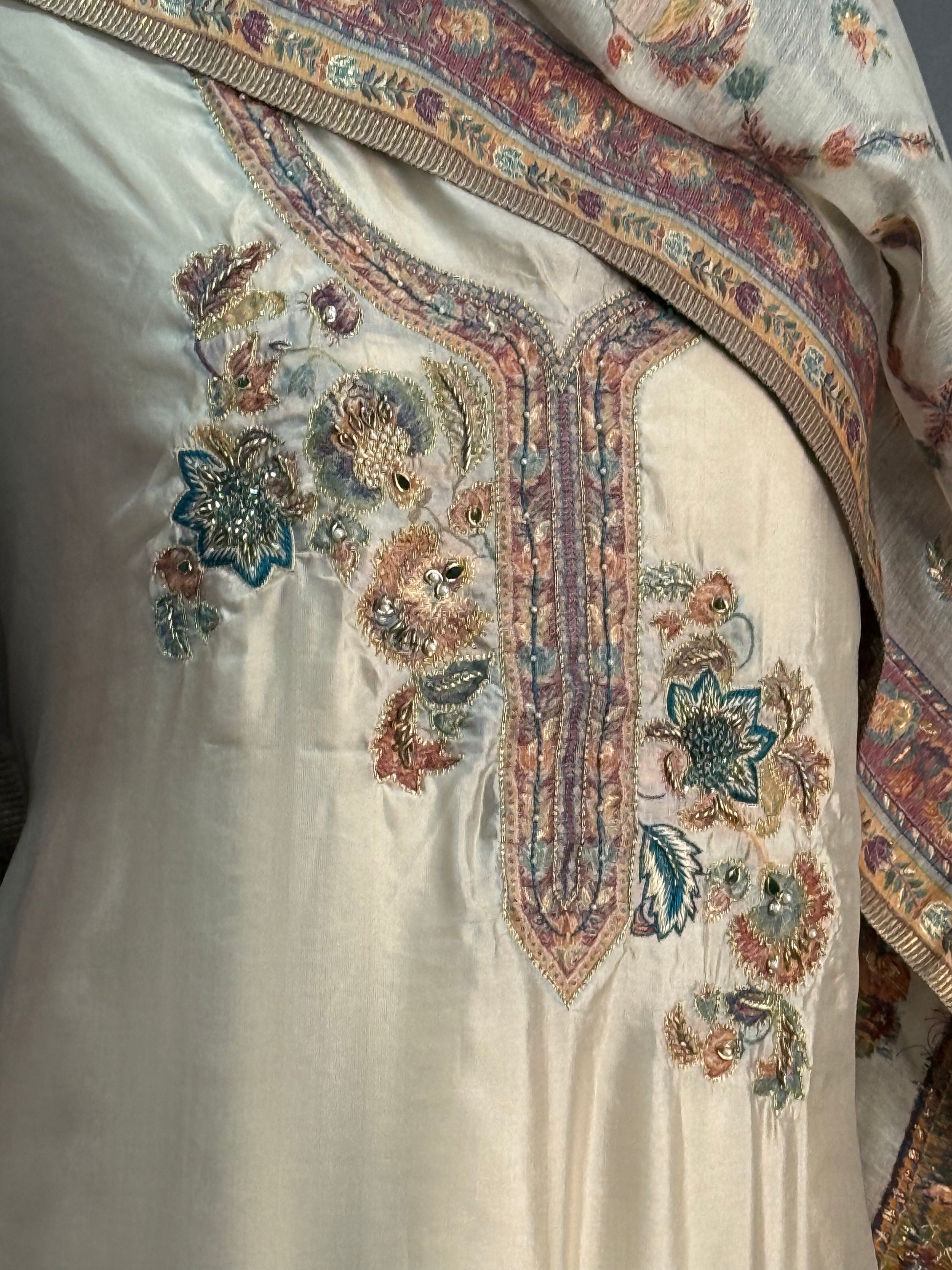 • Shirt: Approx. 3 meters, pure Kani silk with fine handwork on the front & sleeves