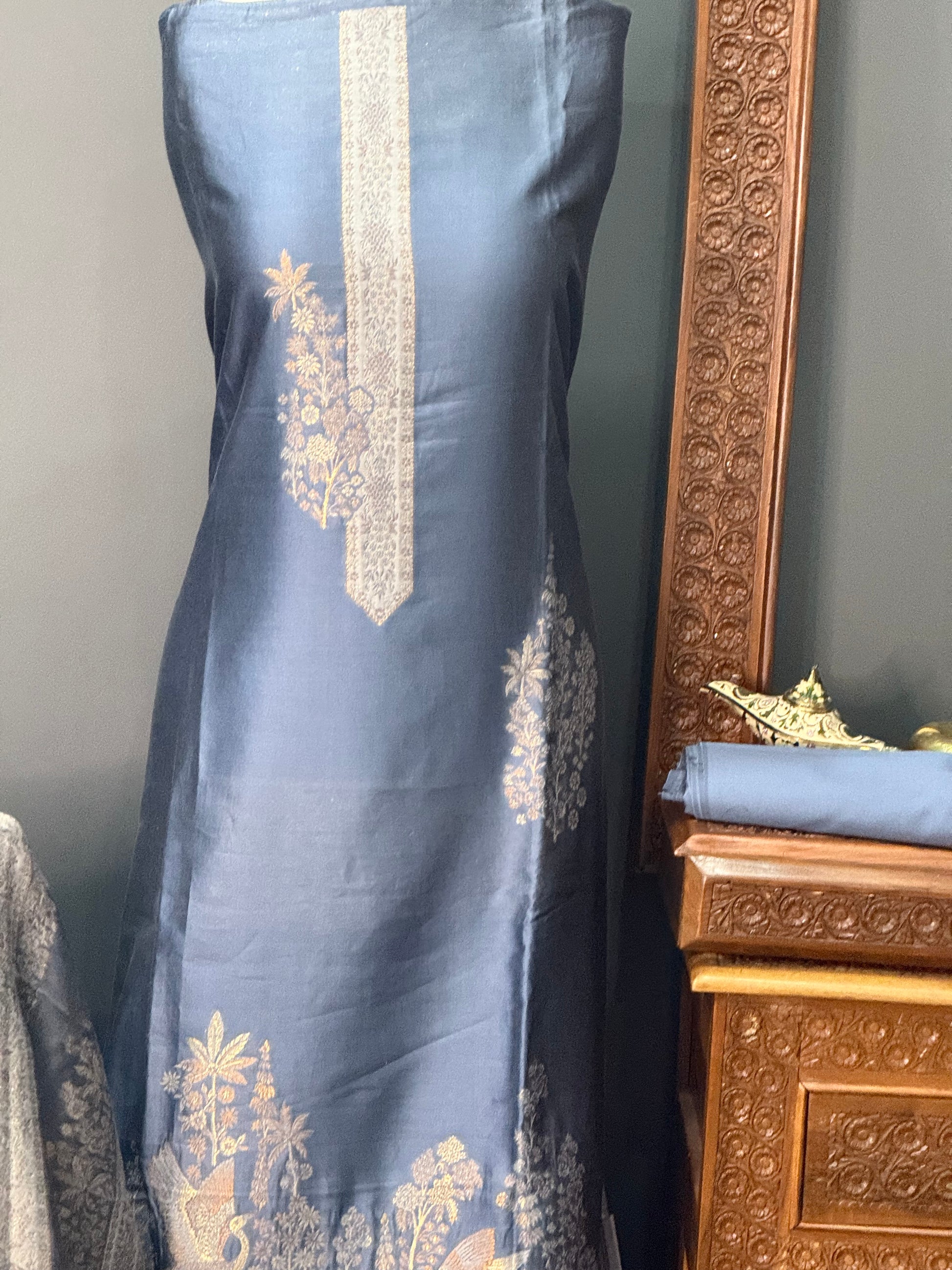 • Shirt: Approx. 3 meters, pure Kani silk with fine handwork on the front & sleeves