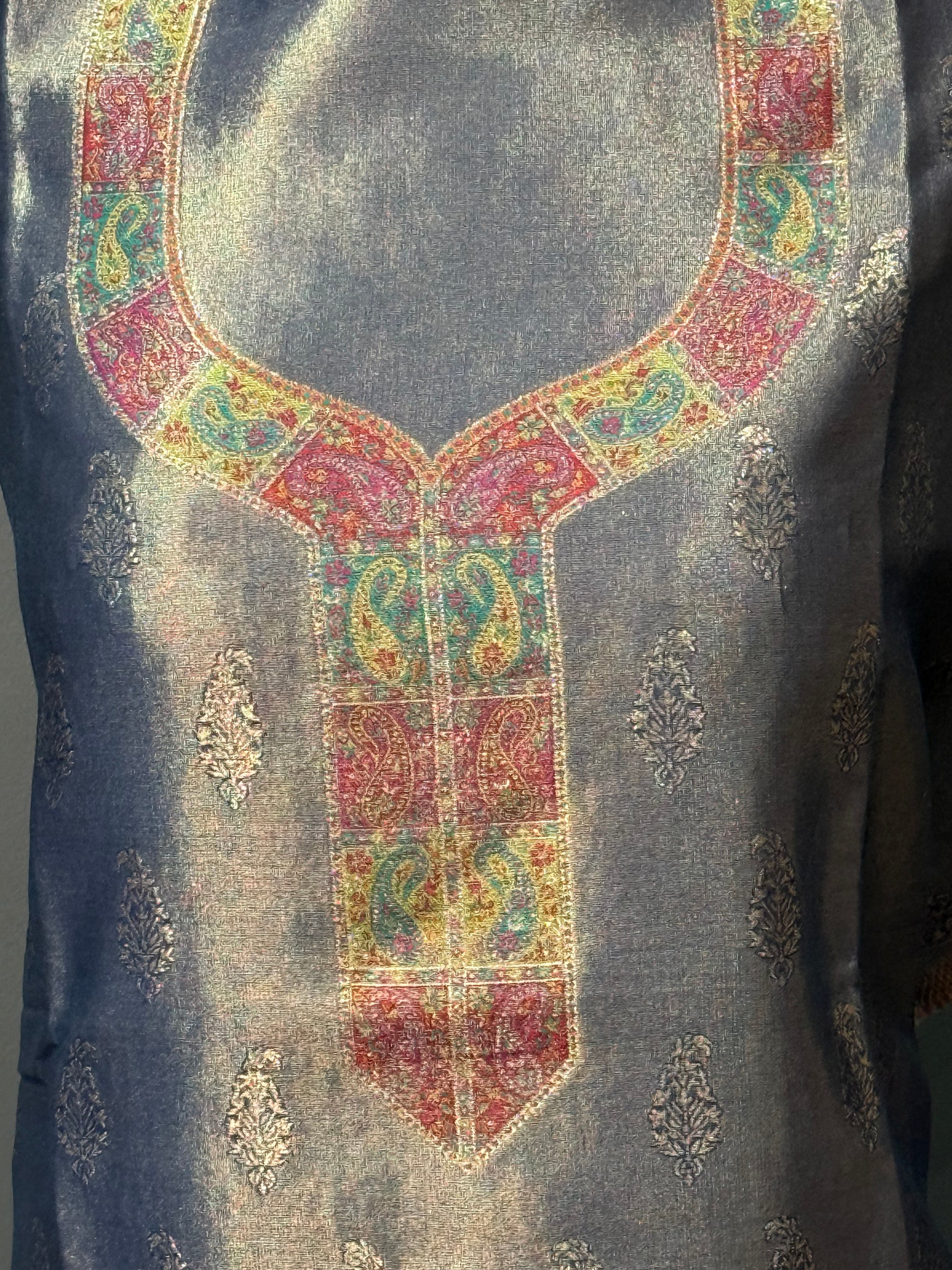 - Shirt: Approx. 3 meters, pure Kani silk with fine handwork on the front & sleeves