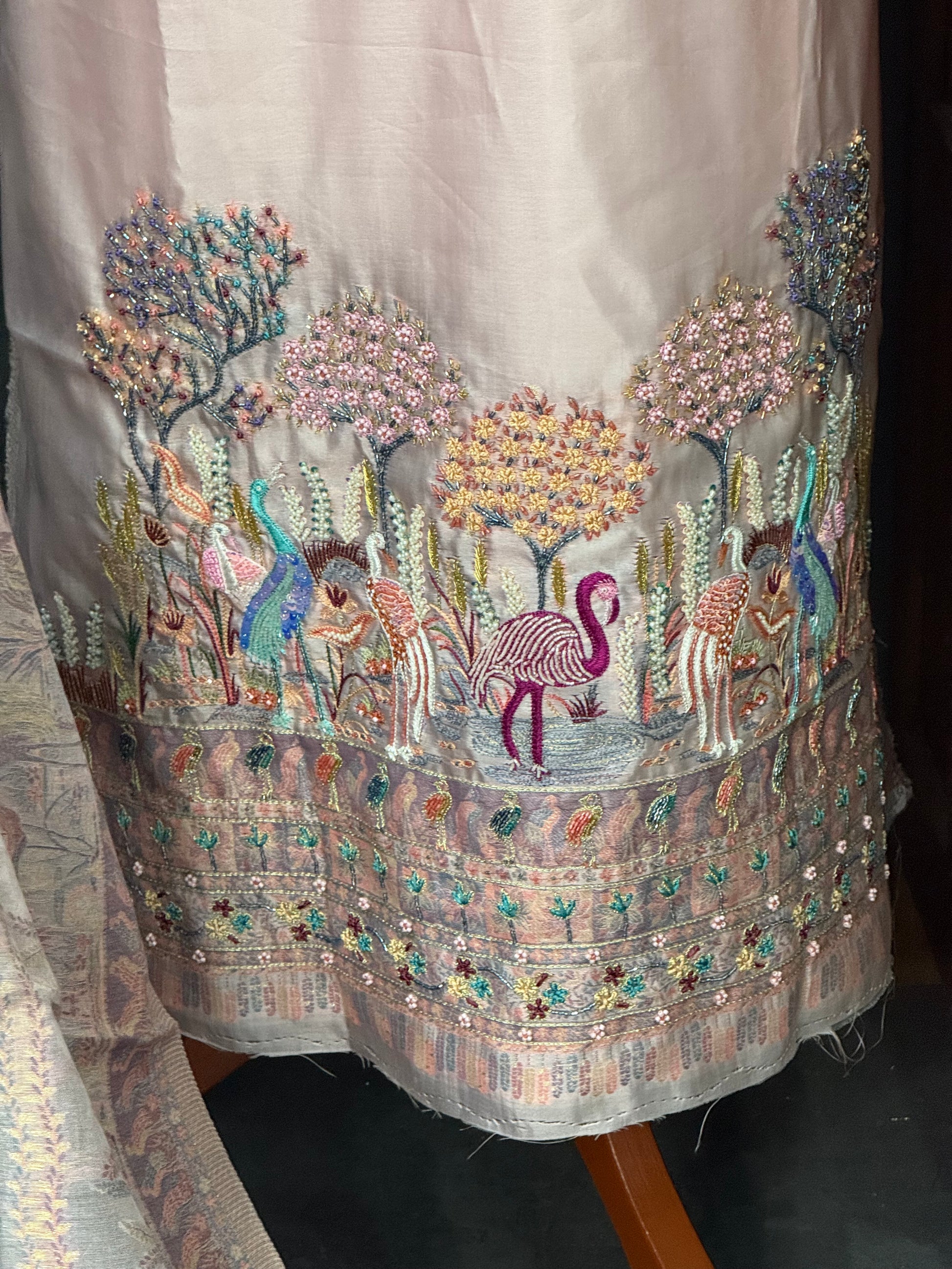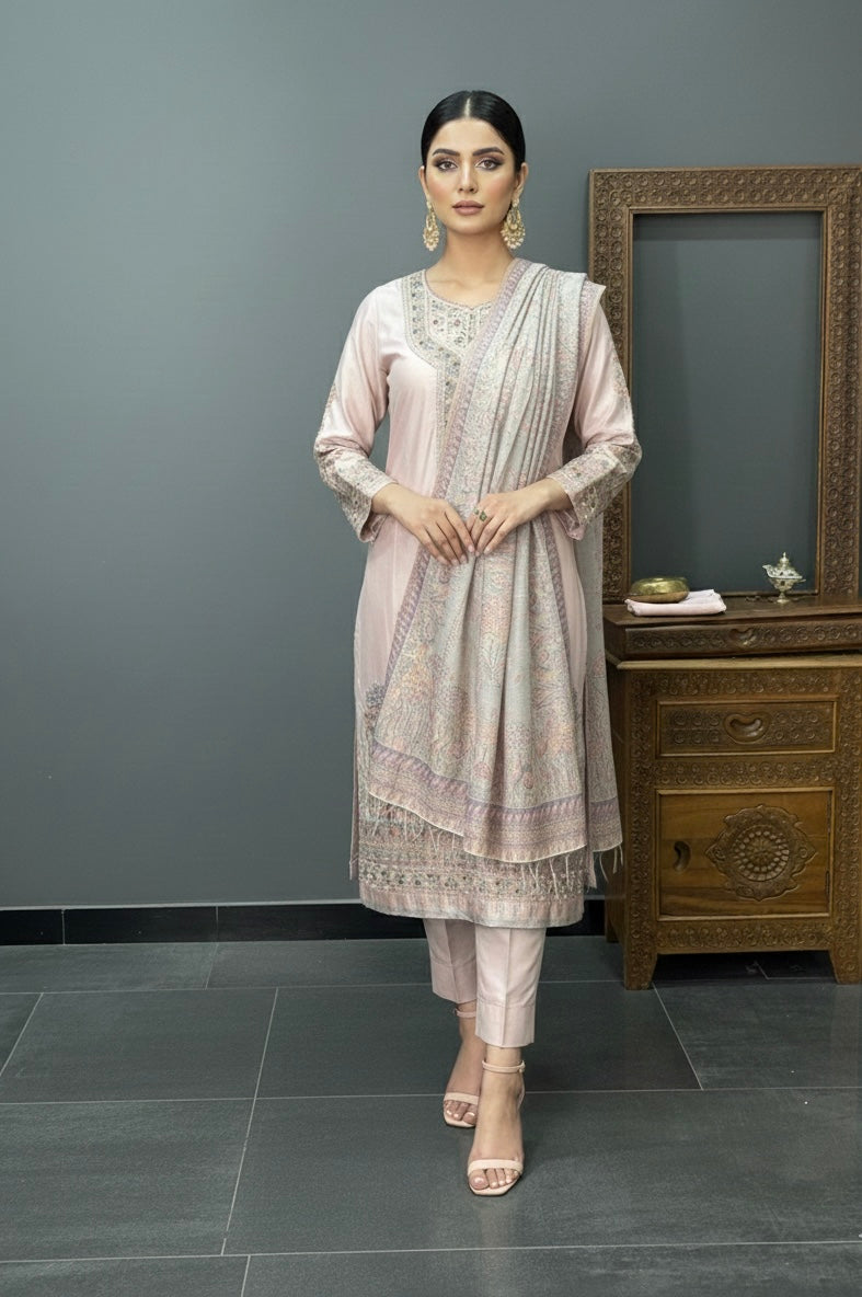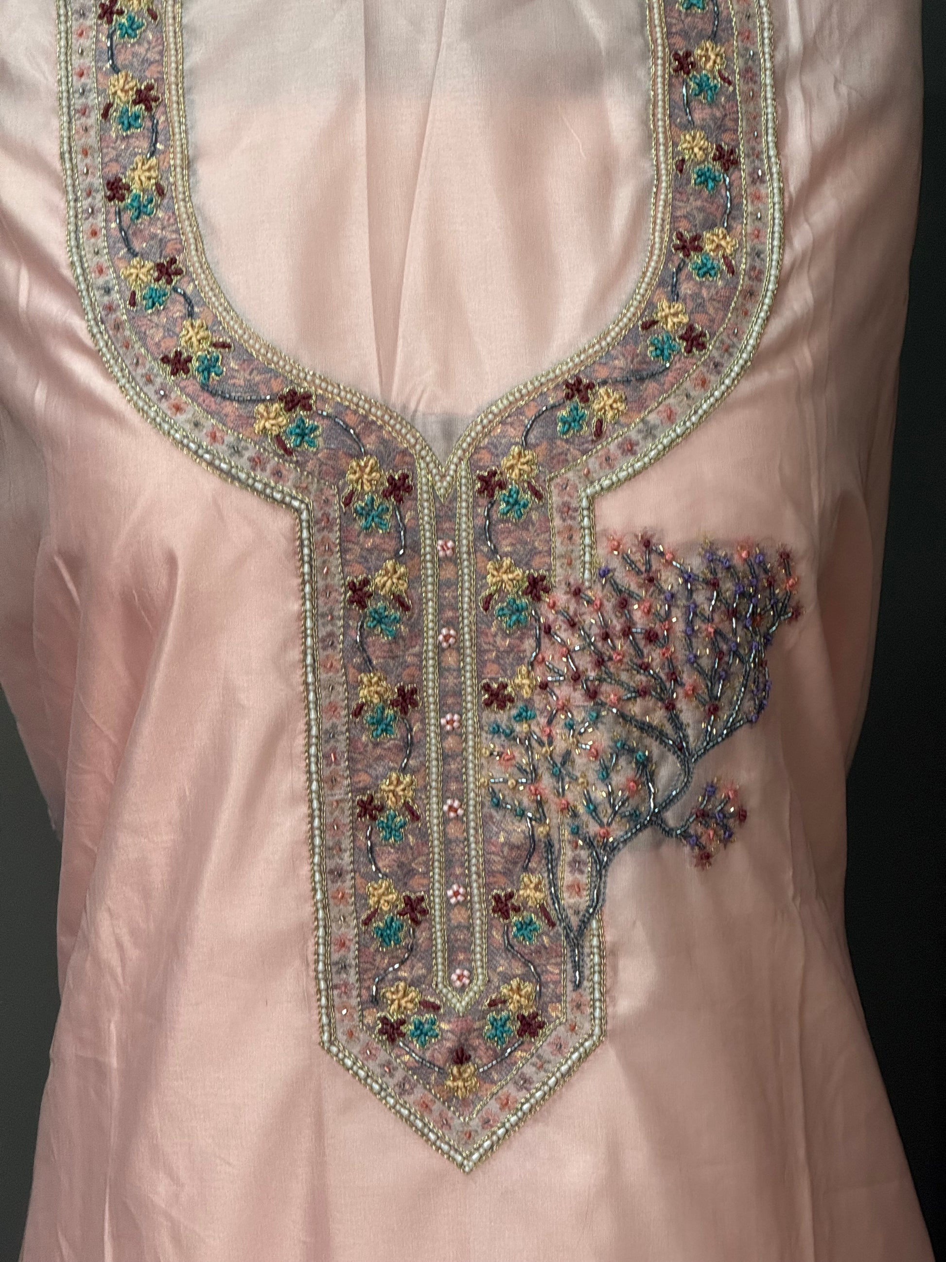 • Shirt: Approx. 3 meters, pure Kani silk with fine handwork on the front & sleeves