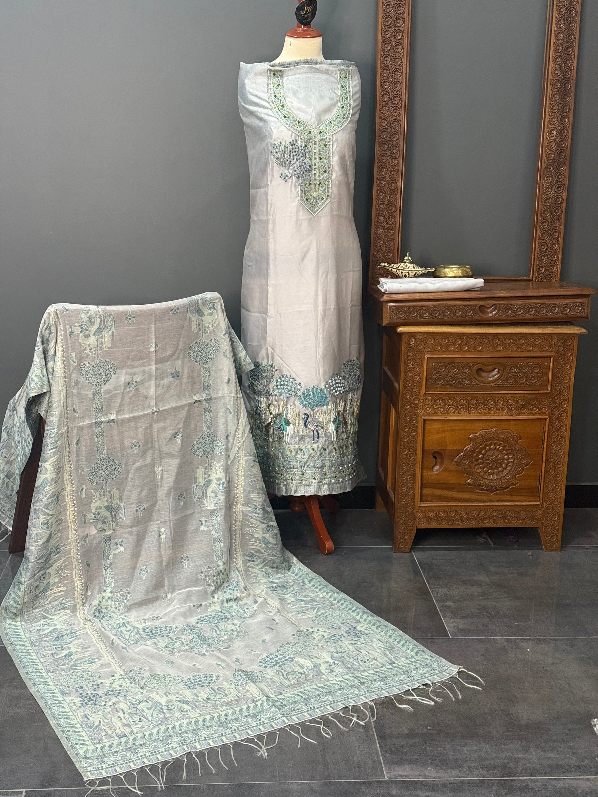 • Shirt: Approx. 3 meters, pure Kani silk with fine handwork on the front & sleeves